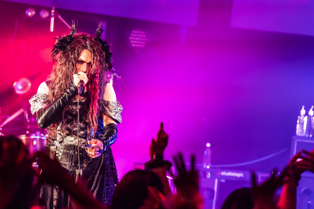 そのうえでZeke Deuxは、エモメロ/ハードロックな『Reborn』を通し、この場をふたたびヘドバンや拳の突き上がる様に染めあげた。Kakeruの煽りに触発され、フロア中から「Oi!Oi!」と声が上がる。メロハーな表情も、彼らの魅力を語るうえでは欠かせない。途中、ミリアのベースソロや、渚月とHarukaのギターの掛け合いやユニゾンプレイも登場。歌で心が一つになれる。なんて気持ちが熱く高ぶる光景だ。