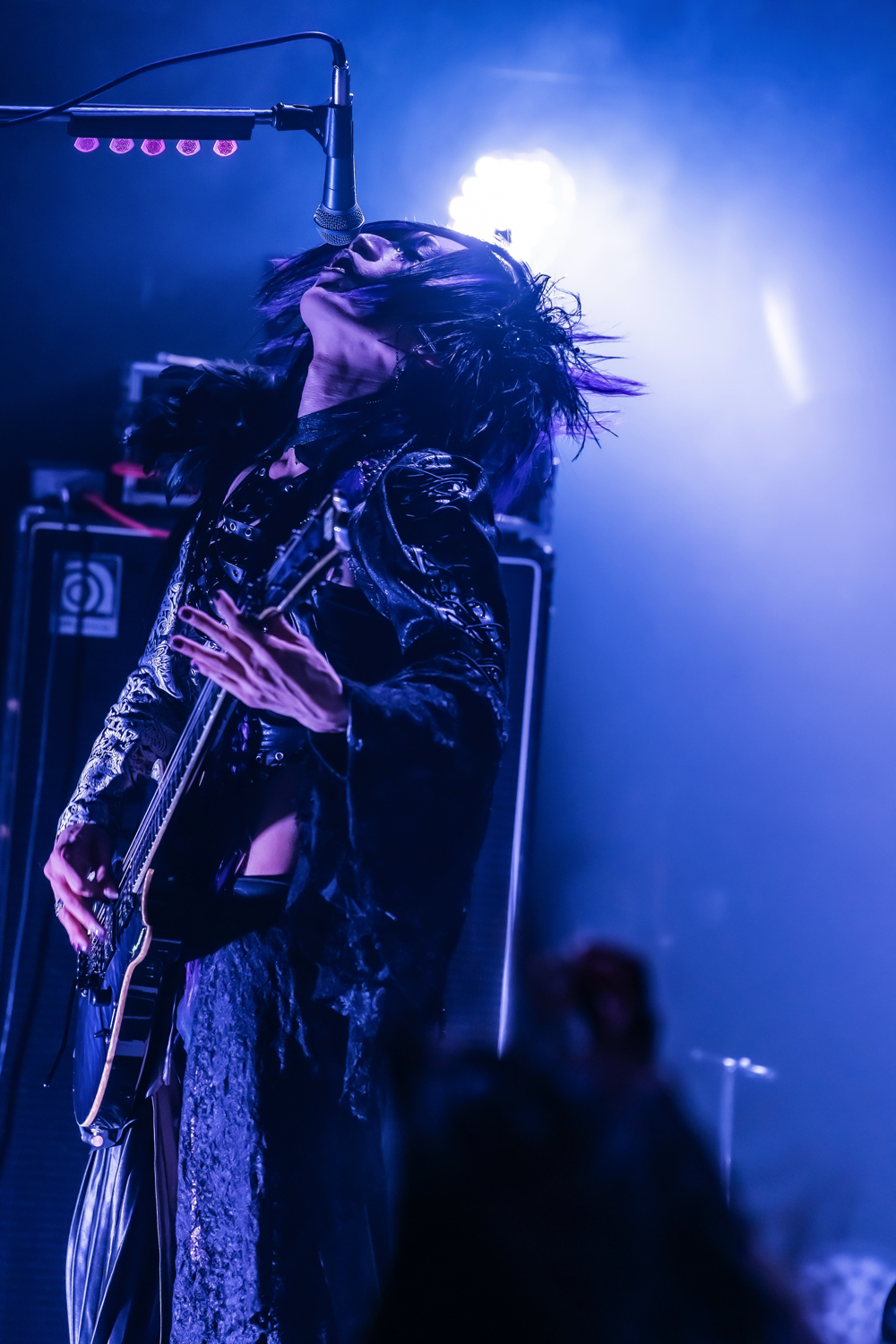 「自分らしく胸を張って」と投げた言葉を合図に、身体を激しく揺らして歌うKakeruの動きに合わせて、観客たちも身体を激しく横に揺らしだす。Kakeru自身の、いや、Zeke Deuxの生きざまを刻んだミドルメロウ&ヘヴィネスな『Myself』ても、この場に儀式のような様が生まれていた。ビートに合わせて身体を揺らしながら音を繰り出すミリア。Harukaと渚月のギター陣は、その場にどっしりと身構え、一心不乱に音を刻み続けていた。