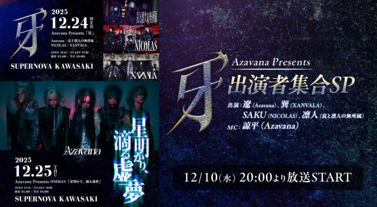 2025年12月24日に開催される Azavana 主催ライブイベント『牙』 の開催を記念した特別番組です。