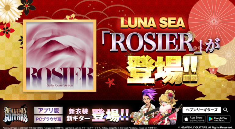伝説のロックナンバーLUNA SEA「ROSIER」が、対戦型音ゲー『Heavenly Guitars』に登場!