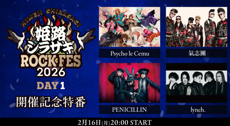 「姫路シラサギROCK FES 2026」を先取り!Psycho le Cemu、氣志團、PENICILLIN、lynch.メンバー生出演の事前番組を、2/16(月)20時よりニコニコ生放送にて放送