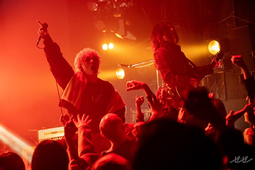 この曲ではフロアに大きなサークルモッシュまで誕生し、その輪の中へ志喜屋 廉がCo2を持って飛び込み、場内中を真っ白に染め上げていたことも伝えておきたい。