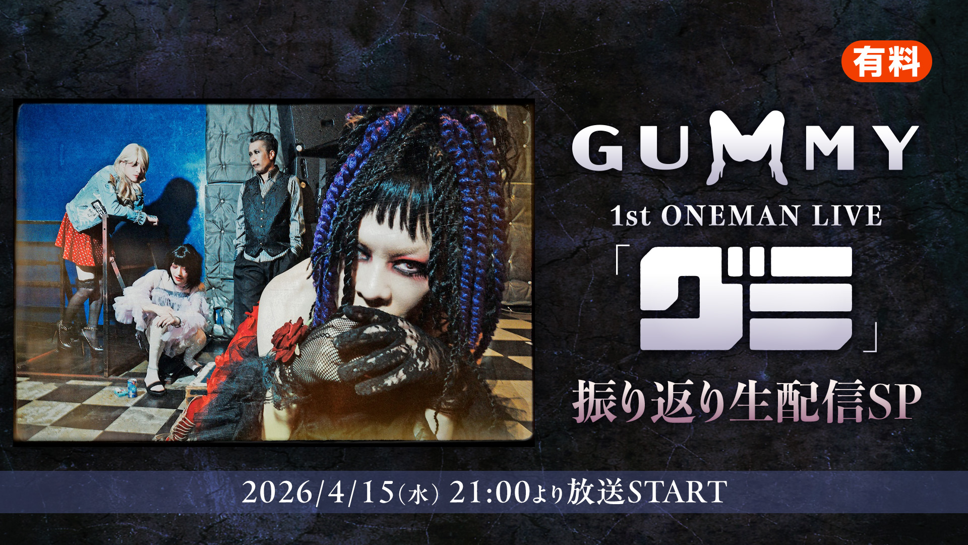 「GUMMY 1st ONEMAN LIVE『グミ』振り返り生配信SP」を、2026年4月15日(水)21時よりニコニコ生放送にて配信いたします。